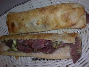 火烧,扁圆如烧饼,含陷似饺子,皮薄陷多,外酥里绵,鲜香味浓,轻咬一口,油水便滋溢而出。分为干火烧和油火烧二种