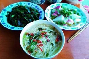 细细的面条煮熟,捞入碗中,浇上晾凉的浆水,一碗清冽酸香、筋道爽口的浆水面便做成了。再炒一两个小菜,如咸韭菜、青辣子、黄萝卜条,或者土豆丝等,盛夏炎炎,吃一碗浆水面,可使人神清气爽,精力旺盛;外出干活或出门远行,吃一碗浆水面,可使人终日不渴,体力顿增;即使春节食荤腻味,吃一碗浆水面,可使人肠胃清爽,浑身舒坦。据临床验证,浆水因其含有多种有益的酶,食之不仅对高血压、肠胃病和泌尿病有一定的疗效,还能清暑解热,增进食欲。通渭人视浆水面为生命,每论走多远,常常想的是浆水面,不仅有精神上的追求,看来也有科学依据。 本文来自 天下民宿 BNBVISTA.COM