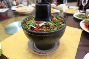 要说暖锅最好的还是沙暖锅,做出来的味道就是好吃。好锅也要配上好料,陇东暖锅用料全是家常菜:以白萝卜片为主,配以木耳、黄花菜、豆芽、粉条(也须当地产的洋芋粉条,不是粉丝)、蘑菇、豆腐(是当地农家做的卤水老豆腐,讲究豆腐有硬度而不追求嫩)、红萝卜、白菜等,但锅面上就要用高档菜来盖面子,即五花肉、肉丸子、酥肉(用肉馅加鸡蛋清和调料搅拌后蒸熟可以直接食用的类似现在的午餐肉或者火腿肉)、炖好鸡肉、牛肉等。