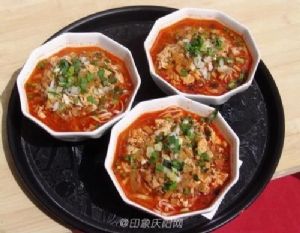 环县荞剁面制做讲究,看似简单,说着容易做起来难。取荞面适量置于和面盆中,加水搅拌成散块状,再用手揉之加水再揉之,使其成为光滑有韧性的整块面,将案板置于锅上,把和好的面放在案板上,用杆面杖向锅的方向杆开,形如舌状,越到锅边越薄,双手握住单刃刀两头,将杆开的面剁成细条条,入锅煮熟即可食之。 天下民宿