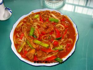 清泉羊羔肉是一种独特的地方风味美食。其特色在于独特的滩羊品种,独特的生长环境,独特的加工方法,独特的药膳滋补价值。清泉乡地处祁连山前山地带,造就了独特的气候环境。境内水草丰茂,气候凉爽,生长着柴胡、麻黄、益母、蒲公英、黄苓、桔梗、薄荷、干草等数十种草药,山中水流潺潺,矿物富集,羊羔日食药草,夜饮矿泉,从而使羊肉细胞成分改变,造就了肉质细嫩、味道鲜美的清泉羊羔肉,国家工商局正式授予"清泉羊羔肉"商标。