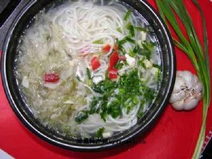 浆水面先要制作浆水,把芹莱或箭杆白莱、莲花莱投入面汤,加上浆水酵子,盛入缸内放在温暖处发酵三天,即可制成清酸可口的浆水。它含有多种有益的酶,能清暑解热,增进食欲,为夏令佳品。手工面条煮熟后,凉开水浸过盛人碗内,加入浆水,浇上炝过的油葱花,撒上芫荽末,即成浆水面。三伏盛暑食之,不仅能解除疲劳,恢复体力,且对高皿压、肠胃病有一定疗效。( 敦煌)