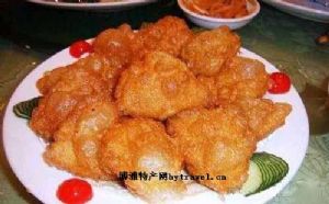 在油面中包入冰糖、白糖、玫瑰香精、核桃仁、芝麻等加工成小圆饼。然后在油锅中煎炸后即可食,吃起来香甜酥松。( 敦煌)