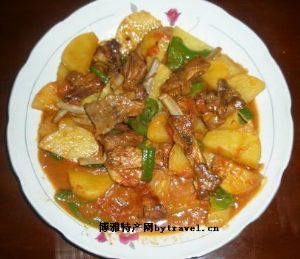 烩菜,维吾尔语称阔尔达克,它是喀什维吾尔族婚庆 喜日、逢年过节用来待客 的一种菜,它味美可口,肥而不腻,香气四溢,色彩丰富。其做法是,将连骨肉剁成小块, 土豆、黄萝卜切块,洋葱切片备用。锅里放油烧热,放羊肉块炒至半熟时,放洋葱、盐等调 料,然后放入黄萝卜、土豆,炒至七成熟,倒入适量的水,用文火慢慢地炖,熟后即食用。( 喀什)