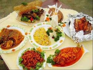 临朐的全鱼宴,就是以满桌佳肴,清一色的鱼为主料。精选当地优质鲢鱼、鲤鱼,肉质鲜美,营养丰富,含有丰富的蛋白质、无机盐、碳水化合物、脂肪和各种维生素。采用炸、煎、炒、炖等多种烹调方法,制作的菜肴形、色、味俱全。用鲜鱼和湖虾,可烹制鱼菜120多种,称为“全鱼宴”。