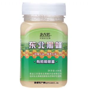 东北黑蜂具有世界上四大著名蜂种的主要优良性状,强壮有力、采集力强、抗病能力强、耐低温等特点都是决定蜂产品优秀品质的关键因素。经由东北黑蜂采集酿造出的纯天然、原生态的北大荒牌蜂蜜、花粉、蜂胶、蜂王浆等系列蜂产品,是蜂产品行业中令人骄傲的国家原产地保护产品。椴树蜜是蜜蜂从中国东北独有的野生椴树花中所采集,呈浅琥珀色,又有薄荷的清香味,易结晶,结晶颗粒洁白细腻,味道甜润,为北方的上等蜂蜜。本品为东北黑蜂采集自国家保护区原始森林的纯天然野生椴树蜜;为椴树蜜中之上品,具有色正、味香、清甜可口、回味绵长等特点,含有人体必需的多种维生素,是蜂蜜中难得的佳品。