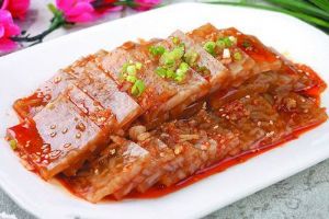 将除了毛的猪皮,放入适当的调料,进行长时间的熬制,使熬制的汤里含有一定的皮胶含量,然后再冷却,冷却后猪皮和汤就会凝固在一起,沾上调料,即可食用。因为是冷却后食用,冷却可以说作是冷冻,所以叫作猪皮冻。 Copyright BNBVISTA.COM