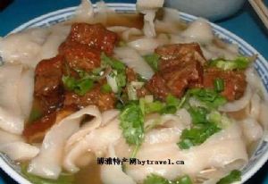 虽然说刀削面山西名吃,但在我们鸡西很火的,好像也经过改良了,在北京我到现在还没吃过像我们那儿那么好吃的。我们那儿的刀削面是用牛肉辣汤的,这个可以根据自已的吃辣程度放,有治感冒的疗效哦!