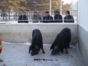 (1)外在感观特征: -全身被毛黑色,鬃长毛密,冬季密生棕色绒毛;头中等大,颜面直长,有纵行皱纹,耳大下垂;单脊扁身,背腰微凹;腹大下垂,但不拖地;臂稍斜,尾粗长;四肢粗壮;飞节上部和腋侧部有皱褶;07-8对以上,排列整齐;性成熟早,公猪-匀称,发育良好; -肉类产品色泽鲜红,肉质坚实,肥瘦分布均匀,层次分明,肥膘晶莹剔透,脂肪含量适中,横切面呈大理石花纹分布,切面光滑,口感细腻多汁、肥而不腻,可谓色、香、味俱佳,是世界上难得的肉类精品。 (2)内在的品质指标:-PH值为6.32±0.21,肌肉解冻失水率约5%,嫩度适宜,光密度测定值为0.937,肌肉含水分少而干物质多,肌纤维束细,肌内脂肪含量适中,系水力强,无灰白肉和黄膘肉。每100克猪肉:肌肉水分68.39±2.76,粗蛋白大于18%,粗脂肪大于11%;肌内蛋白质23.35±1.61,肌内脂肪5.25±0.52;肌纤维直径36.48±2.01um,肌束内肌纤维数43.78±3.07;氨基酸总和大于16%;钙大于3mg/100g,磷大于110mg/100g,铁大于1mg/100g。 (3)安全要求:兰西-严格按照(NY5029-2008)标准执行。
