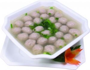 在广宗的饭店,都能吃到比较正宗的丸子汤。丸子汤也作“水氽丸子”(氽,把食物放到沸水里稍微一煮)。它的配料十分考究,丸子可以用牛肉、羊肉、猪肉、鱼肉、虾、豆腐等氽制,最常见的还是猪肉丸子。丸子闻起来香,吃起来口感光滑。汤汁,清淡可口,非常有味儿。下面介绍一下制作方法,以猪肉丸子汤为例,需备有:猪肉,盐、味精、大葱、姜、淀粉、香菜、香油等。首先,将猪肉洗净,剁碎,加入淀粉、精盐、葱末、姜末及少许清水顺一个方向搅,(水要边搅边加)上劲成胶状,做成肉丸。这里的盐一定不要多了,因为汤里还要加盐,不然就咸了。然后,把汤锅置火上,放入清水,加精盐、味精、葱末烧开;待水烧开后把火调小些,就可以下肉丸子了,开锅丸子浮起即熟。要注意好火候,火小了不熟,火大了肉丸儿就会烂锅。撒上香菜,盛入汤碗内,淋上几滴香油儿,这时鲜美的丸子汤就做好了。