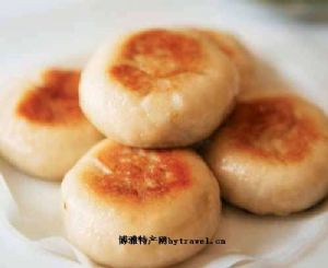4、烘焙。烘焙都是用平底锅(煎盆)。将饼坯放入后,在饼面涂上一层植物油,翻过来再烘,待饼皮松发饱满,再翻过来焖熟即成。在烘焙时须注意皮熟馅生现象,如饼皮突起,有弹性,即表示馅心已熟。