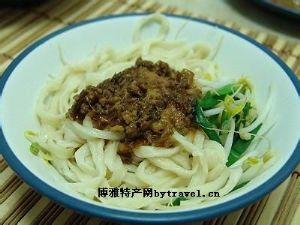 曲面是曲周民间传统食品,取绿豆、黄豆、冬小麦3种主料,按一定比例磨成细粉,合置盆中,拌入鸡蛋清与芝麻香油。调和成面块;揉和约半小时以上,使之成为软、柔、韧兼备的熟面,再用纯绿豆粉做铺面,用面杖擀压成薄片,以快刀切为粗细一致的细条,最后按规格断拢成把,成为成品。条细如丝,色泽淡黄,煮熟后具有果子露香味,入口柔滑,咀嚼筋韧。质疏散不粘连,耐贮存,便携带。为高蛋白营养食品,极宜糖尿病、高血压、动脉硬化等患者及年老体弱者食用。
