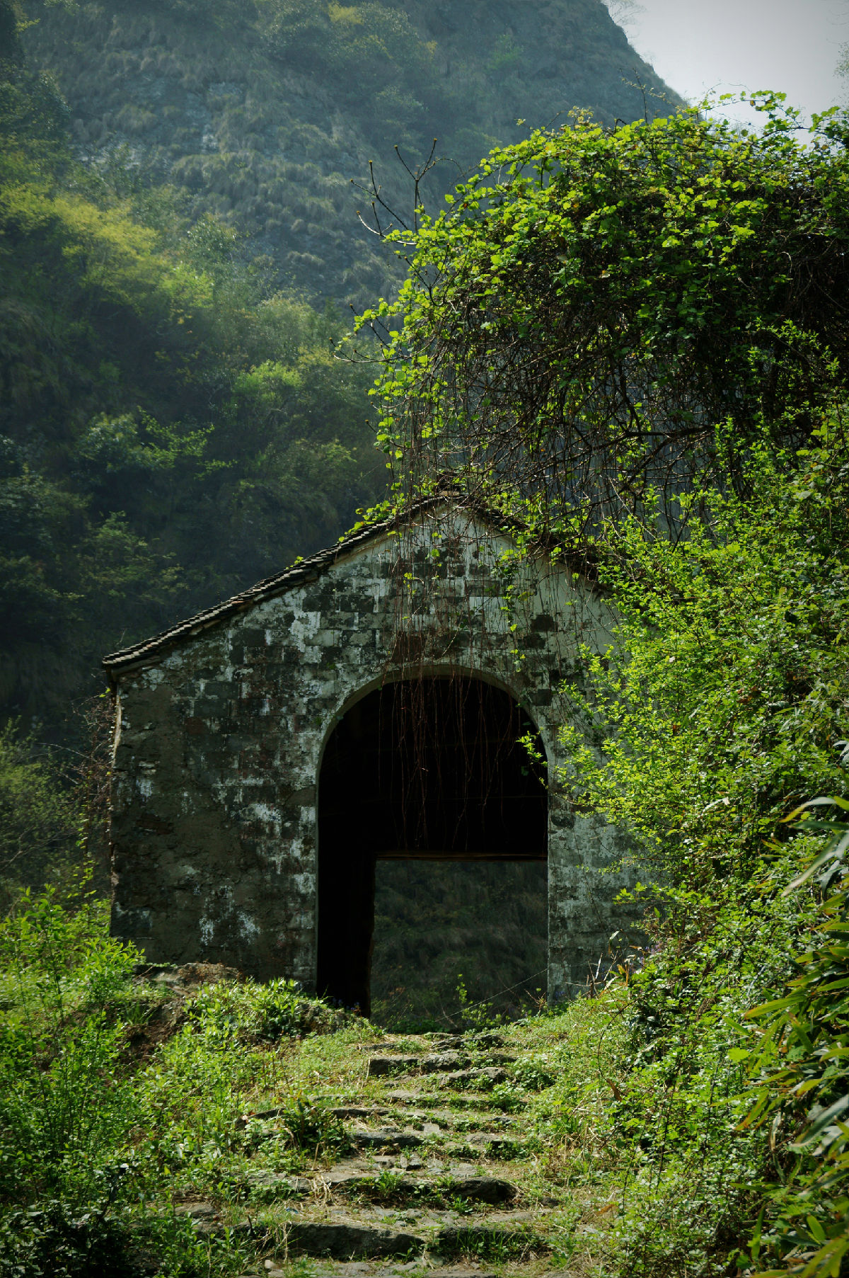 雪窦岭古道在稽东止步坑与安村之间。石级山道完好,近止步坑段因路边有庄稼地,村民仍经常在走。这道岭以前是安村、上王等村村民到竹田头的进出通道,现在有公路从寨营口绕行,基本上不再有过路人行走。岭里有石景、小瀑布。止步坑海拔低,安村高,山路是一路向上。翻上是水库,从水库向左边走约半里就是安村。