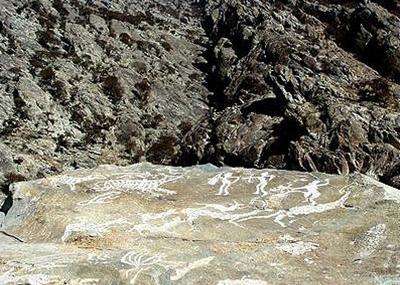 这些岩画大多刻在草木繁茂,水源丰富,自然环境十分优美的山涧巨石上。岩石都是发亮的黑沙石,刻痕不深,但比较清晰,反映的都是当时的牧区生活。如一块石头上刻着形状不同的十七个大头羊和山羊等形象,高或长十一厘米至二十一厘米不等,可以看出当时的草场和放牧情形。另一块石头上刻有一个人骑着一匹马,前面还有一匹小马,最前面是一条狗。从这幅岩画可以看出,这是记载当时猎人狩猎的情形。还有一块岩石上刻有一个牧人,四周有牛、羊、马等动物,另外有一个形如圈栅的房子,圈内有一条狗(或许是狼),较远处还有一个骑马... |