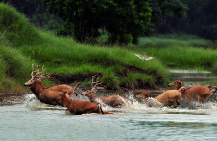 大丰国家级麋鹿自然保护区位于中国江苏中部黄海之滨的湿地滩涂,总面积7.8万公顷。这里港叉纵横,海天相接,盐蒿遍野,芦苇遮天,是太平洋西岸古生境保护最完好的半原始湿地。在这片亚洲东方的净土上,生物多样性十分丰富,自由栖息着麋鹿、丹顶鹤、牙獐等400多个动物家族,蓬勃生长着近500种海边植物,是一所天然的海滨博物馆。