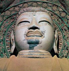 莫高窟第130窟盛唐(705~781)开凿于唐开元、天宝年间。窟内塑莫高窟第二大佛,因位于96窟之南,也称南大佛。佛高26米,为石胎泥塑弥勒倚坐像。洞窟窟形为上小下大的方锥形覆斗顶窟。甬道南北壁上部各开一龛,下部分别绘有供养人像;主室南北壁各绘高约15米的巨型菩萨坐像一身,上部为宋代所绘飞天,是敦煌石窟中最大的飞天图象。窟前保存有西夏殿堂遗址。大佛仅头部就有7米,虽然不符合人体比例,但却巧妙地解决了自下而上仰望佛时的视觉差,从而使观佛者能清晰地看到既庄严又慈祥的弥勒佛的表情,更增加了...