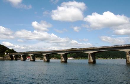 丹东河口于2004年被列入鸭绿江AAAA国家级重点风景名胜区,这里是鸭绿江沿线景色最优美的地方。她是我国少有的原始生态旅游区,沿江两岸千峰竞秀,九岛十八湾清幽婉转。烟波浩淼的一江碧水,古朴纯真的民族风情,吸引了海内外游客纷至沓来,留连忘返。河口断桥——原名清城桥,她是鸭绿江上连接中朝两岸最早的一座公路桥。1941年日本侵略者出于军事侵略和经济掠夺的需要,指令伪满洲国和朝鲜当局建造此桥,全桥总长709.12米,桥高25米,桥面宽6米。设22座桥墩,计21孔,于1942年建...