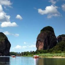 龙虎山仙水岩景区离江西省鹰潭市区约20公里就来到了龙虎山的仙水岩景区。乘小船上行,坐竹筏下行,看奇峰、碧波,游起来比较清松,景色比较优美。仙水岩是仙岩和水岩的总称。水岩以其碧水丹山而闻名遐迩。这里怪石遍布,山水相映成趣,景点最为集中。