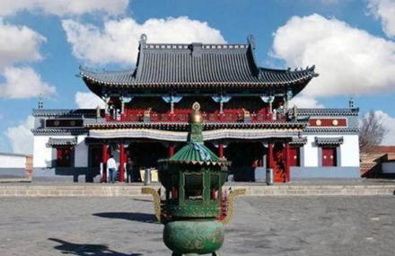 百灵庙位于内蒙古自治区包头市达尔罕茂明安联合旗政府所在地。建于康熙四十二年(公元1702年)。百灵庙系达尔罕贝勒庙的转音,亦称乌力吉套海(吉祥湾)召庙群。各处殿塔雕梁画栋、廊柱林立,墙壁上彩绘着佛经里的人物故事,造型生动,构图细腻。清康熙皇帝御赐“广福寺”牌匾悬挂于大佛殿正门上方。 |