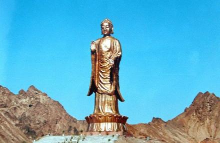 三危山,又名卑羽山,在敦煌市东南25公里处,绵延60公里,主峰在莫高窟对面,三峰危峙,故名三危。“三危”是史书记载中最早的敦煌地名,《尚书·舜典》载:“窜三苗于三危”。早在公元二世纪后半期,东汉著名学者侯谨在此著书立说。东晋永和八年(352年),佛教徒开始在此创建洞窟。前秦建元二年(366年),高僧乐尊经此,见三危山状如千佛,始凿莫高窟。三危山自古以来都是敦煌一处重要的宗教胜地。三危圣境国模甚大,一派佛国圣地、道家天宫的景象。 |