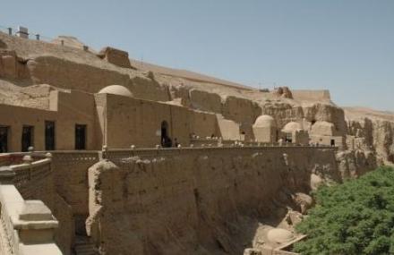 雅尔湖千佛洞位于交河故城西南河谷南岸,依崖凿窟,窟区东西长40米,现存洞窟7个。窟前有宽约5米的长形平台,平台下距河谷谷底约20米深。洞窟内壁画内容为比丘供养人、说法图、回鹘人供养像等,还有部分汉文、突厥文题记。关于雅尔湖石窟的年代问题,众说纷纭。 |