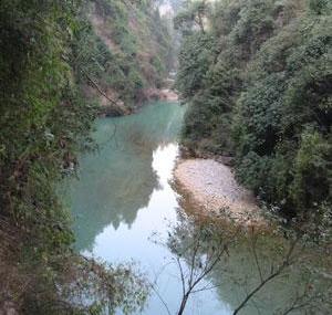 相传,巴王兵败,宁死不愿缴械投降,砸断柳叶剑,扔于山下。柳叶剑在山下划出深深的一条沟,沟底积水成潭,这里看到的长长的一处碧潭,就是巴王断剑化成的柳叶湖。 |