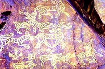 山洞名“顶琼拉康”,高和宽各有4米左右,顶部和四周石墙经过粉刷,其上画满各种国佛像和舞蹈人物。 |