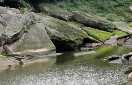 花溪谷位于雁江区保和、中和、老君等镇乡,流域面积199.4平方公里,境内长达70.4公里。花溪谷内幽谷狭窄,重岩叠嶂奇山异峰,各种动植物品种多,天然植被好,自然、人文景点多(已发现自然景点51处,人文景观24处)。夏天激流翻滚响水滩,形成高15米、宽50米的白龙瀑布,春、秋、冬溪水清澈透明,小鱼成群,并有鸟类在深谷啼鸣,沿岸奇坡异石,峭壁似画,湖面平静,独特的地理环境形成了秀丽景观。 |