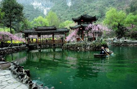 清清的涪江水绕射洪县城缓缓流过,涪江东岸,去县城十余公里,有一片宁静清幽的山峦,被一片片桃林和苍翠森林覆盖,甚是幽静清新,别具一番韵味,那便是远近闻名的蒲家浩桃花山,闻名川内外的桃花源风景区。从县城车行二十多分钟便到山脚下,若有闲情,不妨弃车徒步登山。一条宽阔水泥路从山脚盘曲向上绕着葱绿的山梁直通山顶。山不高,说是山,实际上只不过是典型的川中丘陵。公路两旁,参天大树遮天蔽日,偶尔还窜出一两株山花,格外艳丽。登上半山腰,眼前一亮:一片几百亩的桃林映入眼帘,每到阳春三月一簇一簇的粉红花红... |